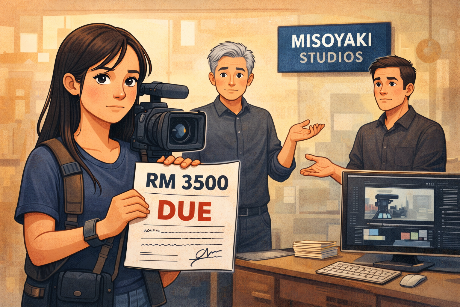 Sarah, a freelance videographer, was engaged by Misoyaki Studio to produce promotional videos for a marketing campaign. The agreed fee was RM3,500. The videos were delivered in full, but payment was never made despite repeated reminders.